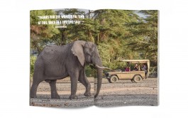 The Hatari Lodge and the Shu'mata Camp are based in Tanzania near beautiful Kilimanjaro. They follow a holistic philosophy in which they include the community, environment and wildlife. Through developing a magazine and replacing their normal catalogue, we wanted to help them communicate important topics and what they stand for. Responsible tourism.