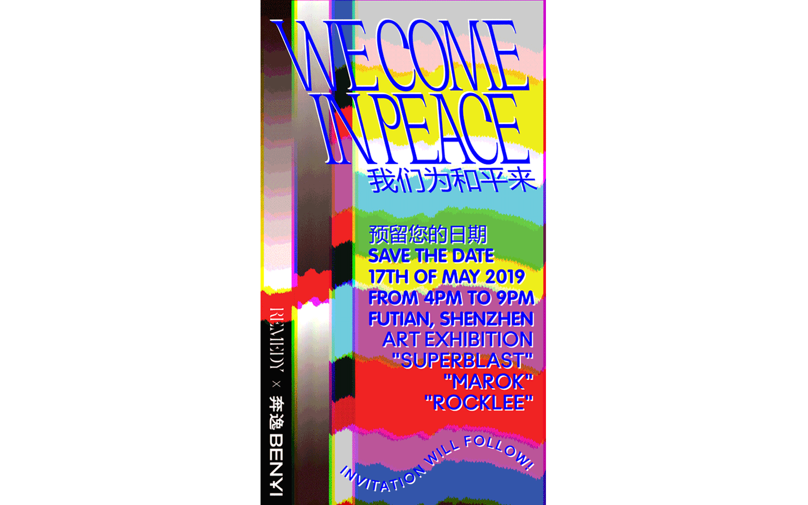 We designed the visual identity and merchandise for ‘We Come in Peace’, an exhibition showing artworks by European and Chinese artists. The exhibition aims to bring two different cultures together, figuring out their simularities and differences.